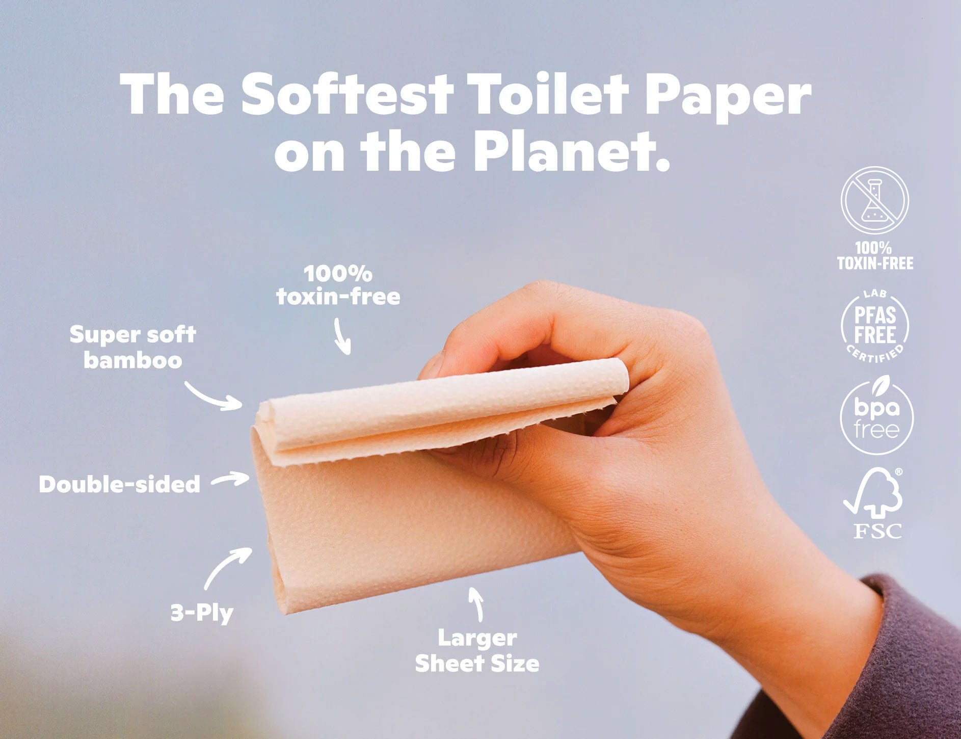 We like to think of this as a very fractional cost over the course of a year to reduce harmful chemicals on your body and save old growth trees and forests, our stalwart against climate change. PlantPaper on average is about .20 cents more than comparable tree-based brands. The average person uses around 70 rolls per year, so that means the yearly cost is only around $15 more to make the switch to PlantPaper.